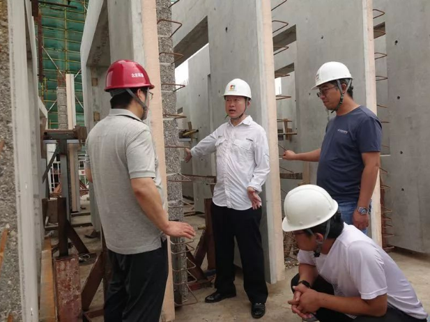 此行重點是觀摩15號樓的施工現場,客人對縱肋疊合剪力墻預制構件設計理念、構件安裝、鋼筋連接、檢驗與驗收等內容進行了詳細咨詢與互動交流,對豎向構件免套筒灌漿連接、預制構件快速安裝施工、以及工程造價優勢有了直觀、切實感受,并對金隅府產品質量以及現場施工質量給予了高度贊揚。