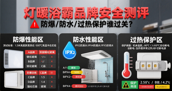寒冬時節,當消費者在浴室中享受燈暖浴霸帶來的溫暖時,一場關于安全的隱形較量正在上演。2024年12月,上海奉賢區一戶居民家中因浴霸線路故障引發火災,浴室吊頂被燒毀;河南某住宅因燈暖型浴霸起火導致天花板焦黑;江蘇一位女子甚至在洗澡時遭遇風暖浴霸迸濺火花。這些觸目驚心的案例,將燈暖浴霸的安全性能推至輿論焦點。在2025年國家市場監督管理總局抽檢中,浴霸產品不合格率達12.3%,其中防爆、防水、過熱保護三大核心指標成為主要失分項。本文通過實驗室數據與真實案例結合,解析主流品牌的安全防護能力。