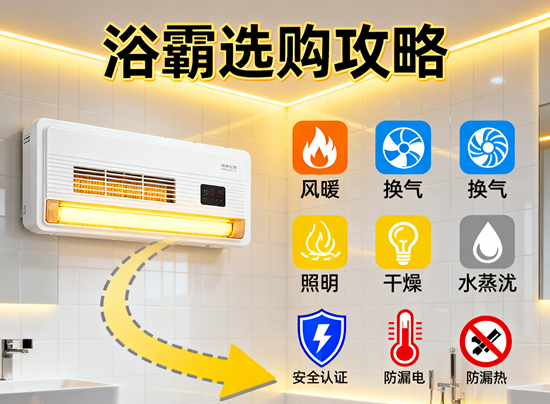 浴室濕度高、空間小,浴霸的安全性尤為重要。選購時需關注: