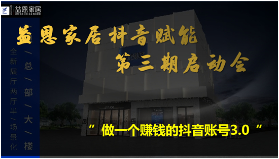 引爆流量,抖贏未來(lái)。2023年6月13日,益恩家居“抖音同城長(zhǎng)期陪跑班”啟動(dòng)會(huì)線上舉行。益恩家居攜手來(lái)自全國(guó)的經(jīng)銷(xiāo)商家人們,聚勢(shì)抖音,通過(guò)專(zhuān)業(yè)的培訓(xùn)學(xué)習(xí),打造引流的抖音賬號(hào),執(zhí)行1個(gè)月的陪跑、3個(gè)月的指導(dǎo),勢(shì)必撬動(dòng)流量藍(lán)海,實(shí)現(xiàn)線下終端的業(yè)績(jī)裂變?cè)鲩L(zhǎng)。