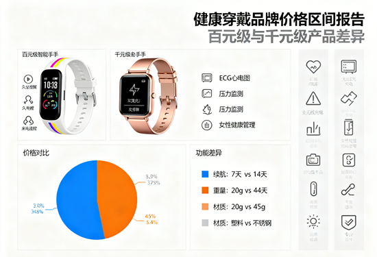 百元級與千元級產品的差異,本質是技術精度、生態價值與用戶需求的深層博弈。在健康中國戰略與AI技術革命的雙重驅動下,可穿戴設備正從"監測工具"進化為"身體延伸",而價格區間的背后,是不同品牌對"健康管理入口"的戰略定位。對于消費者而言,選擇百元級還是千元級產品,需根據自身健康需求與預算理性決策——畢竟,在健康面前,沒有"智商稅",只有"價值匹配度"的精準選擇。