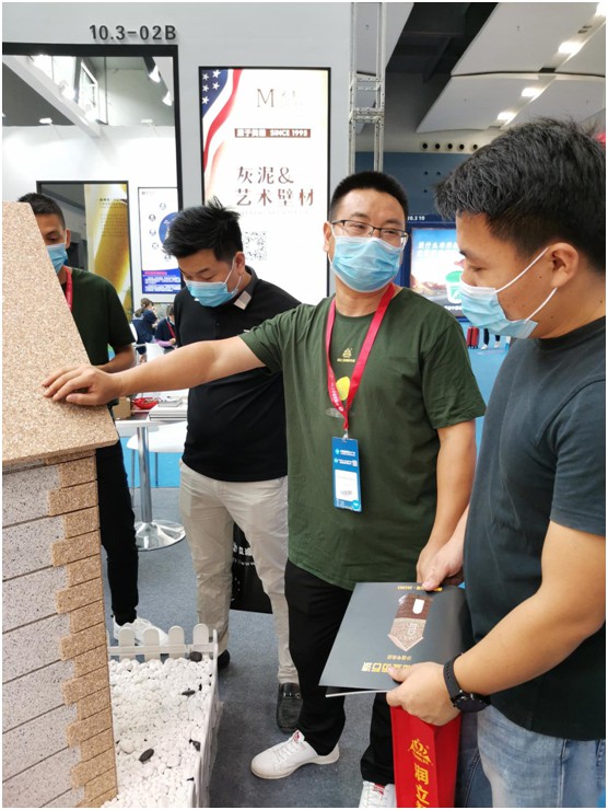 位于展館B區10.3-03展位的潤立漆攜帶抗病毒水漆新發產品參展,并為潤立仿石漆產品注入新的靈魂和新的詮釋。開展首日,便憑借其出彩的展廳設計和產品涂裝效果,在“百舸爭流千帆競”的會場中精彩亮相,大放異彩,受到業內相關人士和權威媒體的高度關注,前來參觀、咨詢、采訪、洽談的人士絡繹不絕,展廳現場人來人往,熱火朝天。