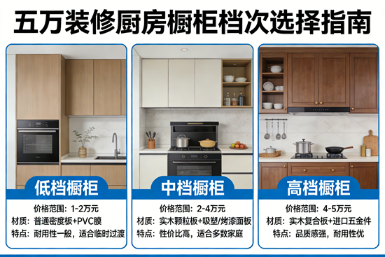 雖然小作坊報價極低(可能全套只需幾千元),但其環保性能、封邊工藝、板材耐用度均存在巨大隱患。廚房是高溫高濕環境,劣質板材容易變形、釋放甲醛。5萬預算說明您對生活品質有要求,為了省幾千元而犧牲健康和使用壽命,絕非明智之選。