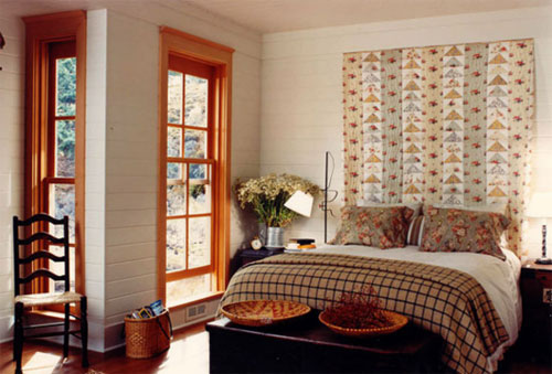 點評:廢棄的窗戶框,里面襯上好看的布料,不同花色的布料看似隨意拼接起來,但卻又讓人感受到精致不俗的視覺觀感。藍色墻面上的這一小細節設計,打造出了不一般的床頭背景墻,布料的選擇考慮到了墻面顏色的配合,雖然不同布料拼接,但整體融入度很高,不會覺得突兀。