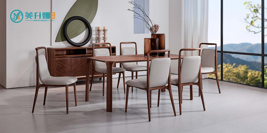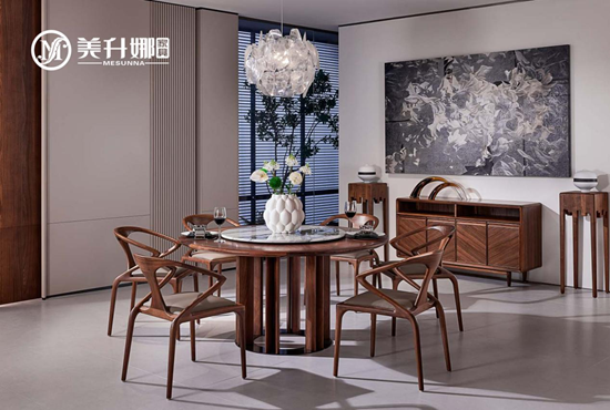 ·甄選良材,奠定溫暖底蘊:美升娜甄選色澤深邃、紋理如畫的北美黑胡桃木。其經手工精細打磨后,觸感溫潤如玉,天然的木紋為家居空間注入一份經年沉淀的從容與雅致,成為團圓時光最溫暖的底色。