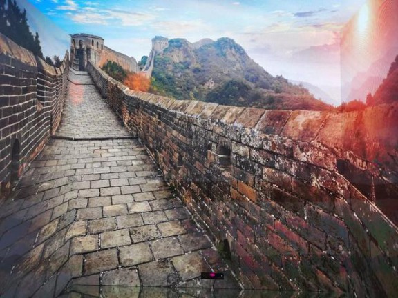 展廳中的LED沉浸屏,模擬雄壯的萬里長城,搭配智能交互技術,讓參觀者置身其中,宛若身臨其境,真的在攀登長城,趣味性十足。如果在展廳、藝術館、科技館、大型商場等等場景應用,都將吸引無數人流。