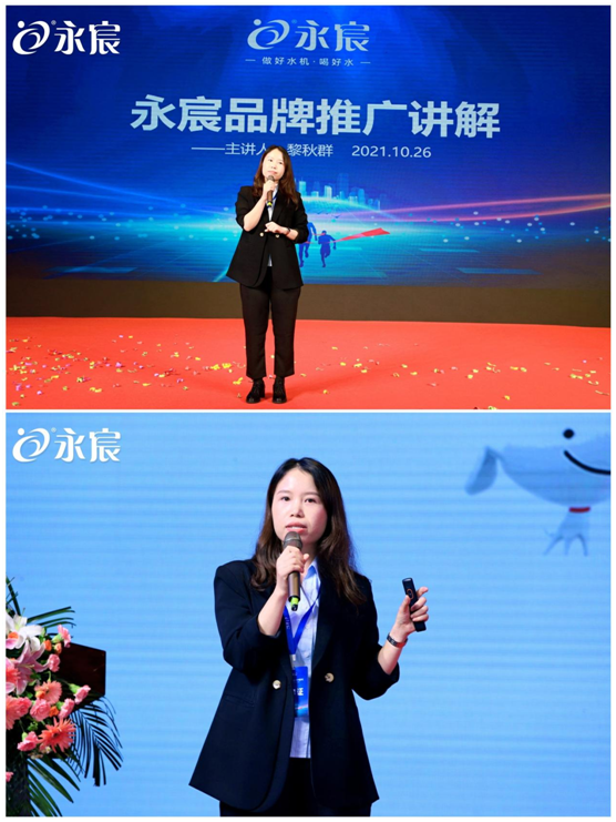 伴隨新品誕生的,還有與之匹配的新戰略。接下來,由永宸銷售總監黎秋群女士帶來《永宸品牌推廣講解》。她提及到,在日新月異的互聯網時代,唯有一系列品牌營銷“組合拳”,才能在市場上快速建立口碑,提高企業的銷售額。永宸在品牌營銷上多項并舉,作出系統、立體、全面的宣傳矩陣,意在為終端深度賦能造勢,為精耕細作市場提供更多保障,邁步新征程。