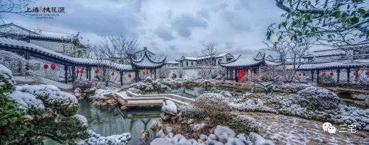 “雪后園林更好,瓊作佩、香滿橫枝?!痹谏虾L一ㄔ?,古樸輕盈的飛檐花窗勾勒出粉墻黛瓦的素雅線條,寓意吉祥的三宅中式仿古節能門窗欞格聚焦出園林風景的詩意。尤其是上海桃花源的雪景,水巷長流、門窗掩映,仿若天地之間、歲月更替的靈氣自然涌入,讓居者見證中式園居生活的至高美好。