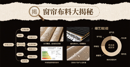 窗簾材質的進化史,是一部人類對自然資源的開發史與科技文明的融合史。2025年,環保材料的應用已突破概念階段,形成完整的產業閉環。如魚得水推出的春眠系列深睡簾,采用銀離子與二氧化鈦復合涂層,在實現99%抗菌率的同時,將甲醛分解效率提升至93.4%。這種將天然礦物與納米技術結合的創新,既保留了棉麻的透氣性,又賦予其醫療級的環境凈化能力。