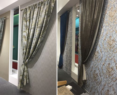 第二大亮點當屬“珠簾壁合”系列,今年柔然增加了多款窗簾(進口、國產)系列,精美的設計、精致的刺繡、高檔的面料、舒適的觸感,讓客戶駐足于此。窗簾與高品質壁紙的完美搭配,更是深受客戶的喜愛!