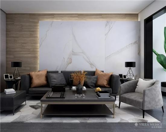 Impero呈亮灰色,表面布滿不規則的銀白色紋理,它在含蓄內斂中又自然流露出優質大理石的奢華與雍容,具有強烈的現代氣息。