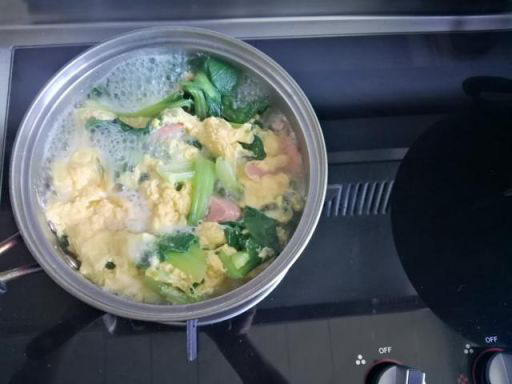 大菜留給老公燒,我再做一個湯吧!我用的是奶鍋,底部較小,不過沒關系,用配送的小鍋鍋架剛剛好,不用擔心奶鍋會傾斜、打翻。