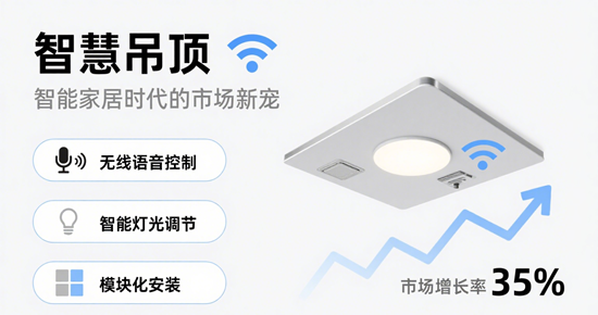 當物聯網、人工智能與建筑美學深度融合,家居空間正經歷一場靜默的革命。在廚房與衛浴的頂部空間,集成照明、溫控、空氣凈化、安防預警等功能的智慧吊頂,已從傳統裝修的"配角"躍升為智能家居生態的關鍵入口。這一轉變既源于技術迭代的必然,也契合了后疫情時代人們對健康、便捷、個性化生活的迫切需求。