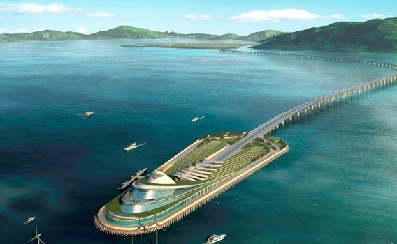 港珠澳大橋總長約55公里,它集橋、島、隧于一體。珠海公路口岸位于港珠澳大橋珠澳口岸人工島之上,是港珠澳大橋核心組成部分,總用地面積約107萬平方米,總建筑面積51萬平方米,是我國唯一的三地互通、客貨兼重的陸路口岸。項目于2013年12月31日正式開工,并于2017年9月30日實現(xiàn)“0”米層貫通。主要功能是對香港、澳門、珠海的出入境客、貨車及經(jīng)三地過境的旅客進行通關查驗和旅客運輸。