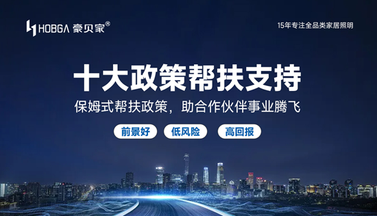 在“光環境”成為家居靈魂的今天,豪貝家照明以15年全品類家居照明深耕經驗,推出“十大政策幫扶支持”體系,為創業者打造低風險、高回報的財富支點。從產品研發到終端服務,從品牌推廣到團隊賦能,豪貝家用一套成功的創業方法論,助您快速搶占照明升級紅利。