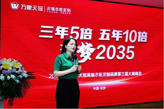 旺德府家居集團新零售定制業務中心副總經理張孟華女士分享萬象天冠高端衣柜定制門店運營管理體系,以實例與成果展現亮眼表現。客流量、成交率、客戶滿意度三指標引領行業,閉環體系的高效運轉,印證了萬象天冠品牌在終端市場的穿透力。