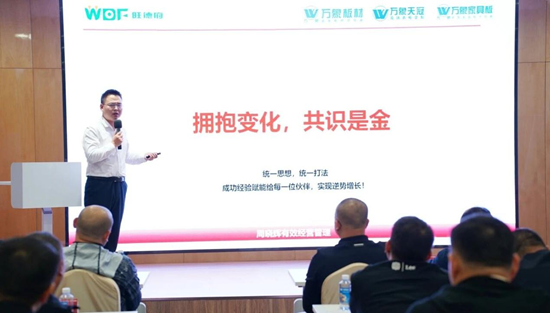旺德府家居集團總裁助理毛寧先生深度剖析傳統渠道面臨的增長瓶頸與競爭痛點,并結合四陽PK業績數據針對性提出破局路徑——以“高端板材+高端輔材+高端衣柜定制”的三維戰略構建差異化優勢,同時強調以經營管理能力的系統性提升為根基,五大渠道作為戰略落地提供堅實保障,推動業務突破傳統局限、實現高質量發展。